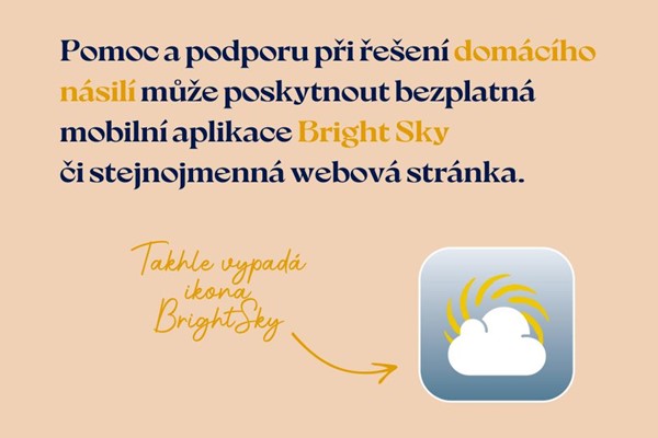 Praktickou podporu při řešení domácího násilí nabízí bezplatná mobilní aplikace Bright Sky či stejnojmenná webová stránka. Pokud máte podezření, že jste vy nebo někdo z vašich blízkých obětí domácího násilí, Bright Sky vám pomůže se v situaci zorientovat a vyhledat specializovanou pomoc. Mezi podpůrné organizace uvedené v adresáři aplikace patří taky právě proFem.